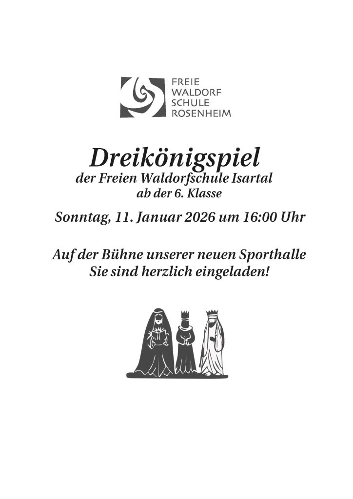 Sie sind herzlich zum diesjährigen Dreikönigsspiel, am kommenden Sonntag, 11.1.2026 um 16 Uhr eingeladen. Es spielt die Kumpanei der Freien Waldorfschule Isartal in den Kostümen der Freien Waldorfschule Chiemgau. Das