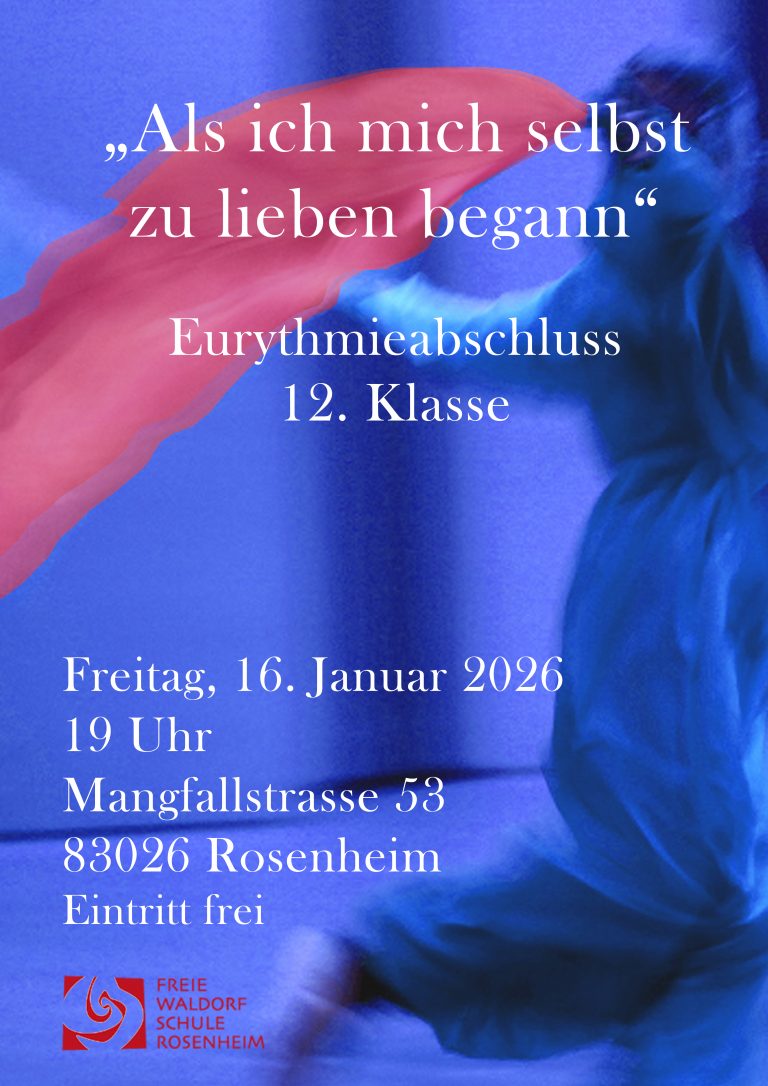 Die 12. Klasse präsentiert am Freitag, den 16. Januar, um 19 Uhr ihren Eurythmie-Abschluss auf der Bühne der neuen Sporthalle der Schule. Das Programm umfasst eurythmische Gruppen- und Solo-Darbietungen zu