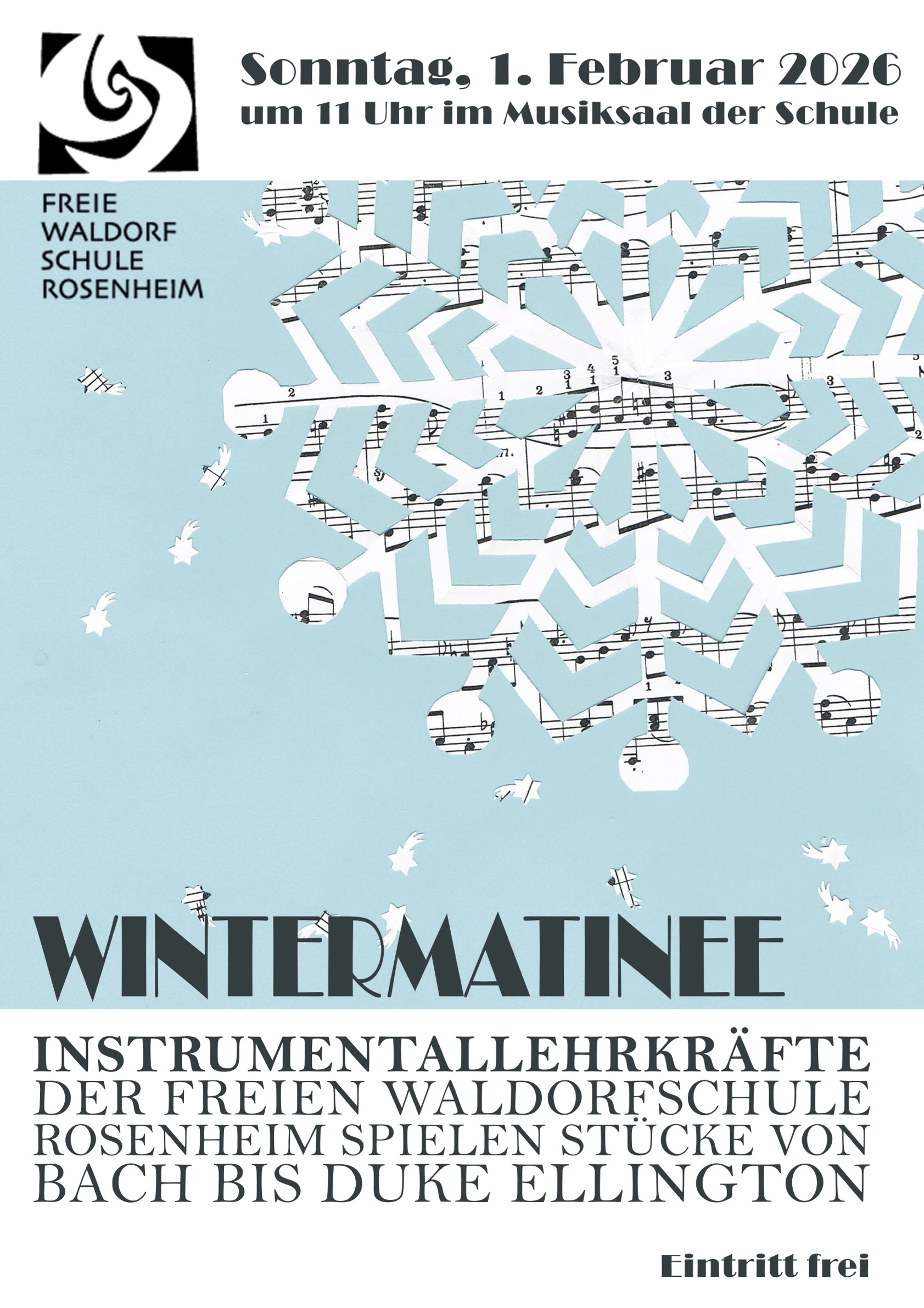 Geehrte Musikinteressierte! Am 1. Februar um 11:00 im Musiksaal werden Sie NICHT die Schüler der Instrumentallehrer hören, sondern ein Konzert der besonderen Art erleben: in verschiedenen Formationen musizieren diesmal die